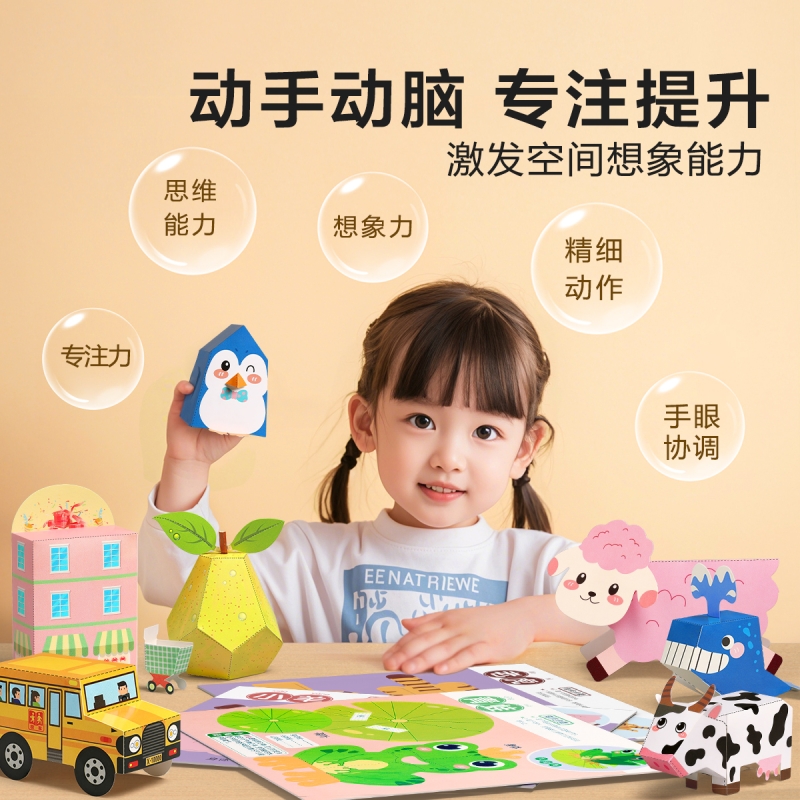 立体折纸手工儿童3d益智玩具趣味制作材料包diy剪纸思维训练大全