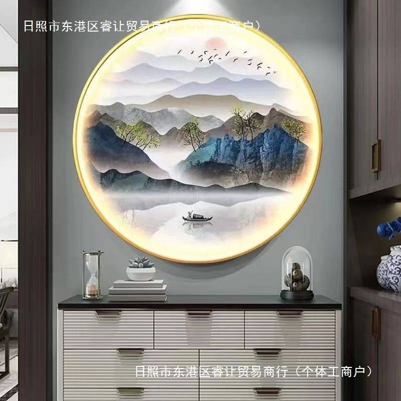 带LED灯新中式轻奢玄关装饰画圆形卧室走廊楼梯足疗茶道养生挂画
