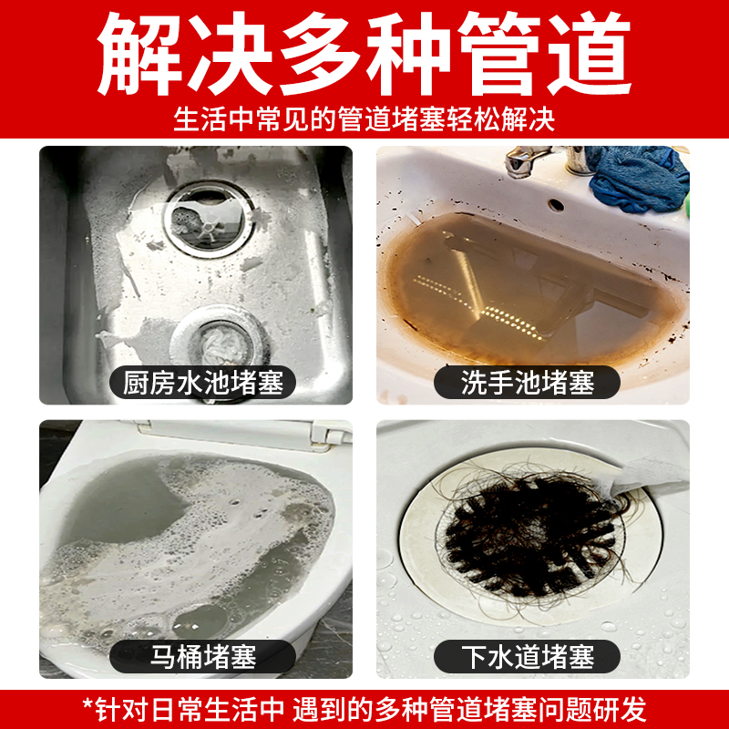 管道疏通剂强力溶解泡泡粉厨房通下水道油污厕所马桶堵塞神器水槽