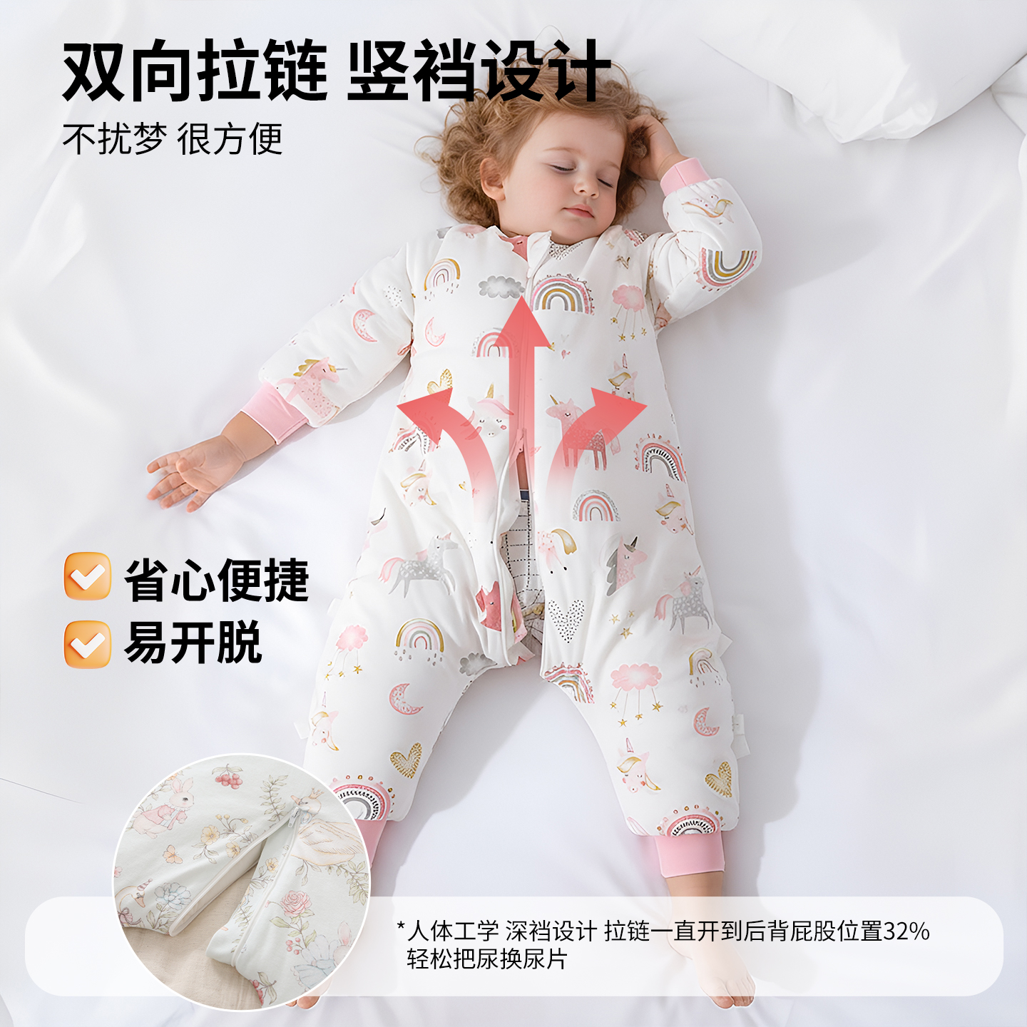 cutelife【轻羽】宝宝婴儿秋冬睡袋竹棉分腿儿童防踢被四季A类