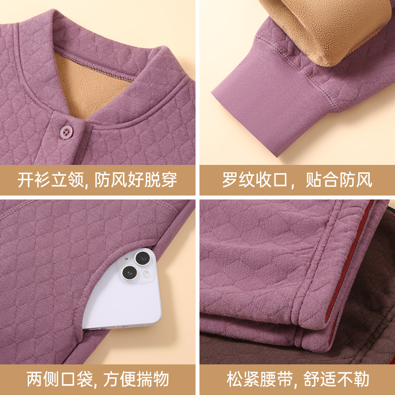 恒源祥中老年人全棉开衫女套装加厚羊羔绒保暖内衣妈妈秋衣裤冬季