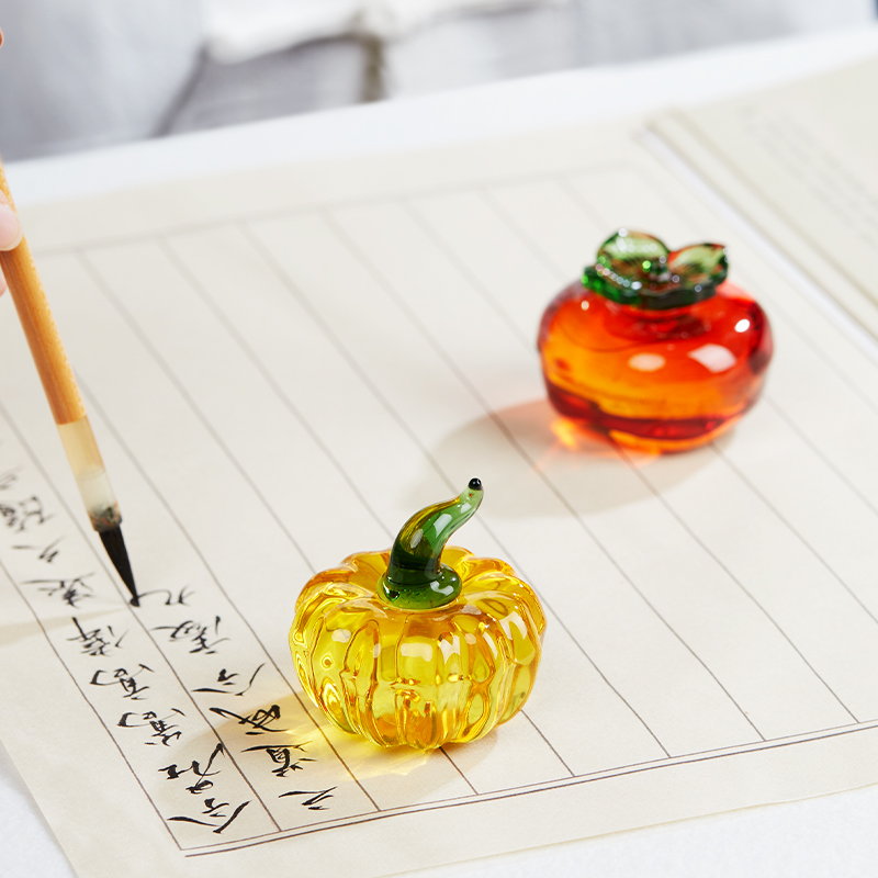 柿柿如意柿子琉璃镇纸毛笔书法镇尺压纸初学者学生创意书房摆件高颜值小号文房四宝压宣纸压书专用实心镇纸