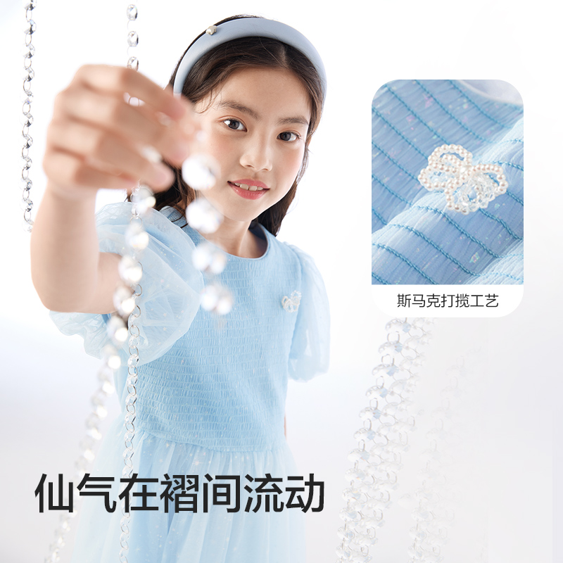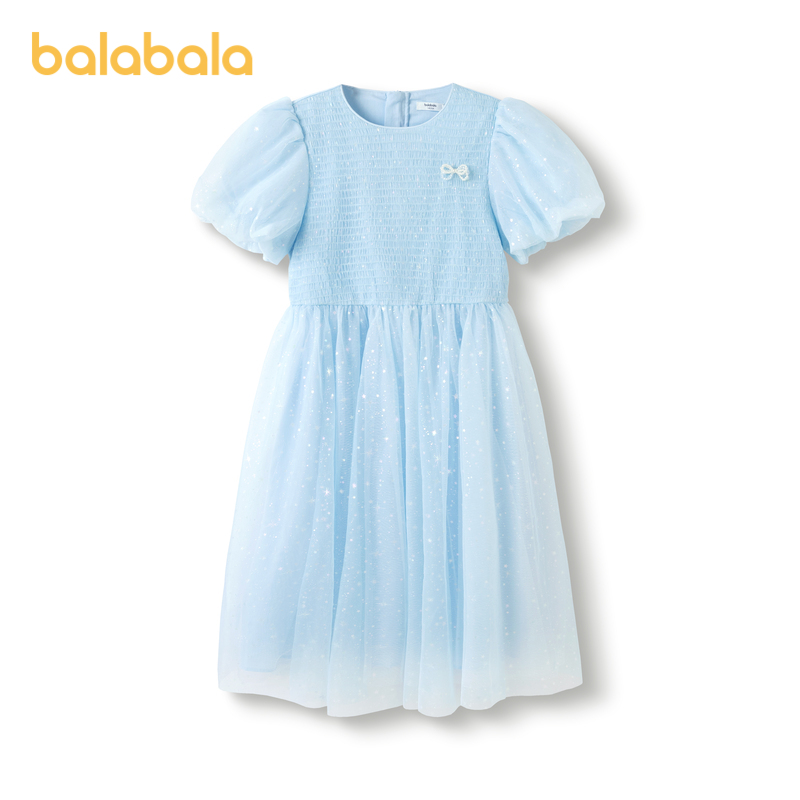 巴拉巴拉女童裙子儿童连衣裙全棉新款夏装薄款中大童网纱裙泡泡袖