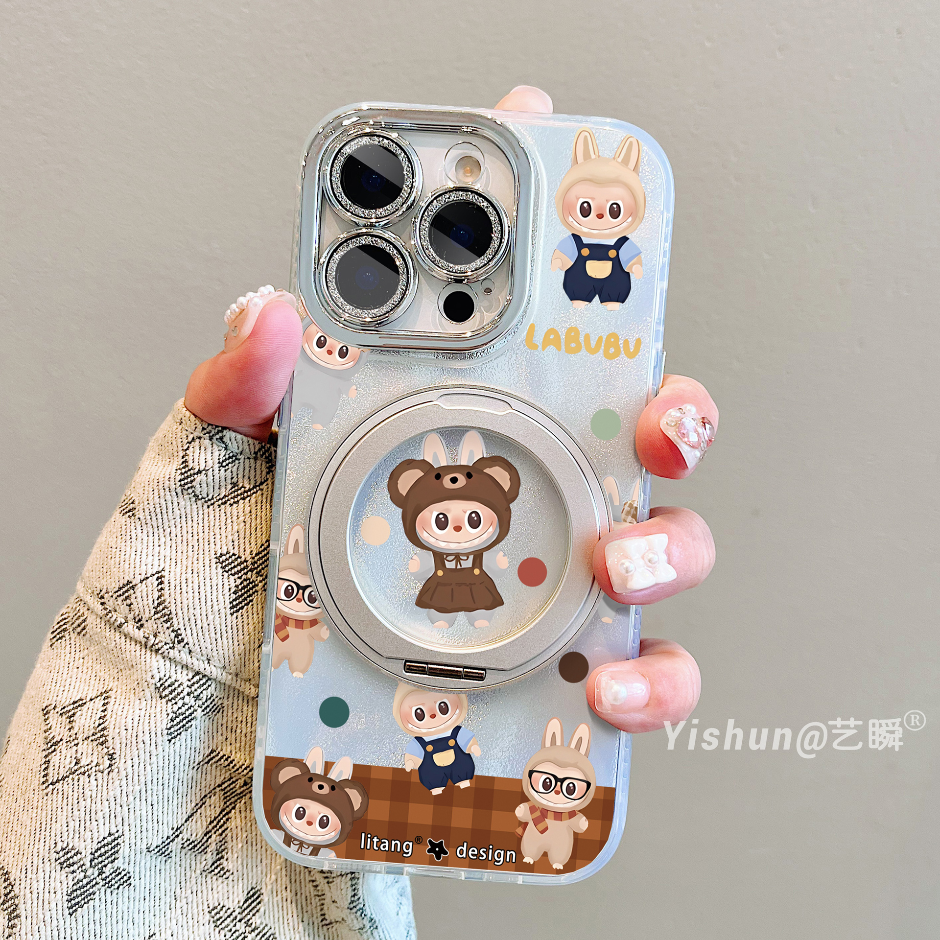 小动物乐园·拉布布的变装日记适用苹果17/17promax手机壳360旋转支架16支点壳iPhone14全包15格纹13女保护套