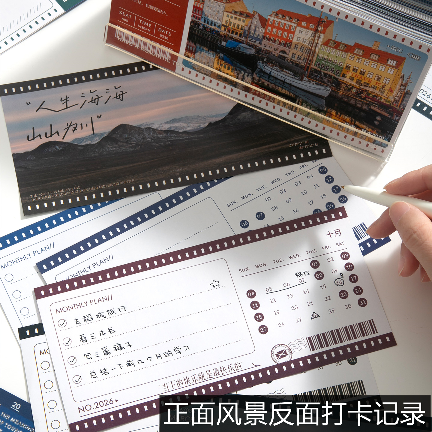 (配礼盒礼袋)2026年世界风景主题365天亚力克日历台历ins桌面装饰摆件旅游摄影打卡网红风景区文创生日礼物