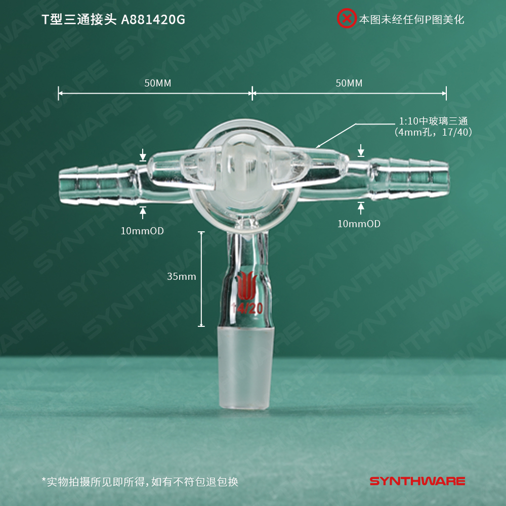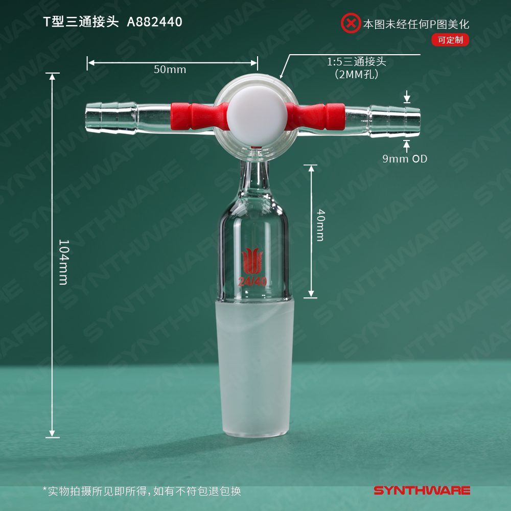 欣维尔三通阀实验室抽气接头三通接头四氟玻璃节门塞抽气接头抽气头接塞实验室弯接管塞导气管三通阀A68/88
