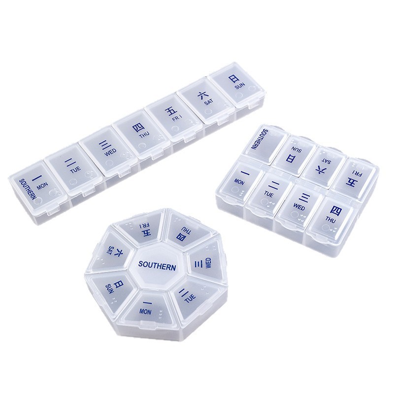 一周7天随身携带药盒大容量中英文七格分药盒药品收纳盒食品级