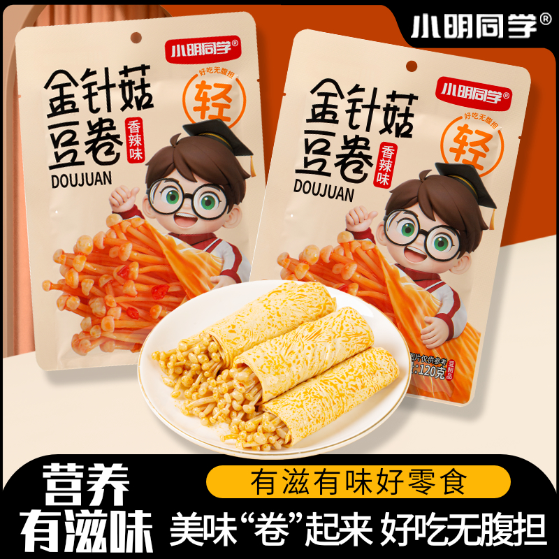 海带金针菇杏鲍菇豆卷夹心豆皮卷休闲宿舍办公室解馋小零食辣味