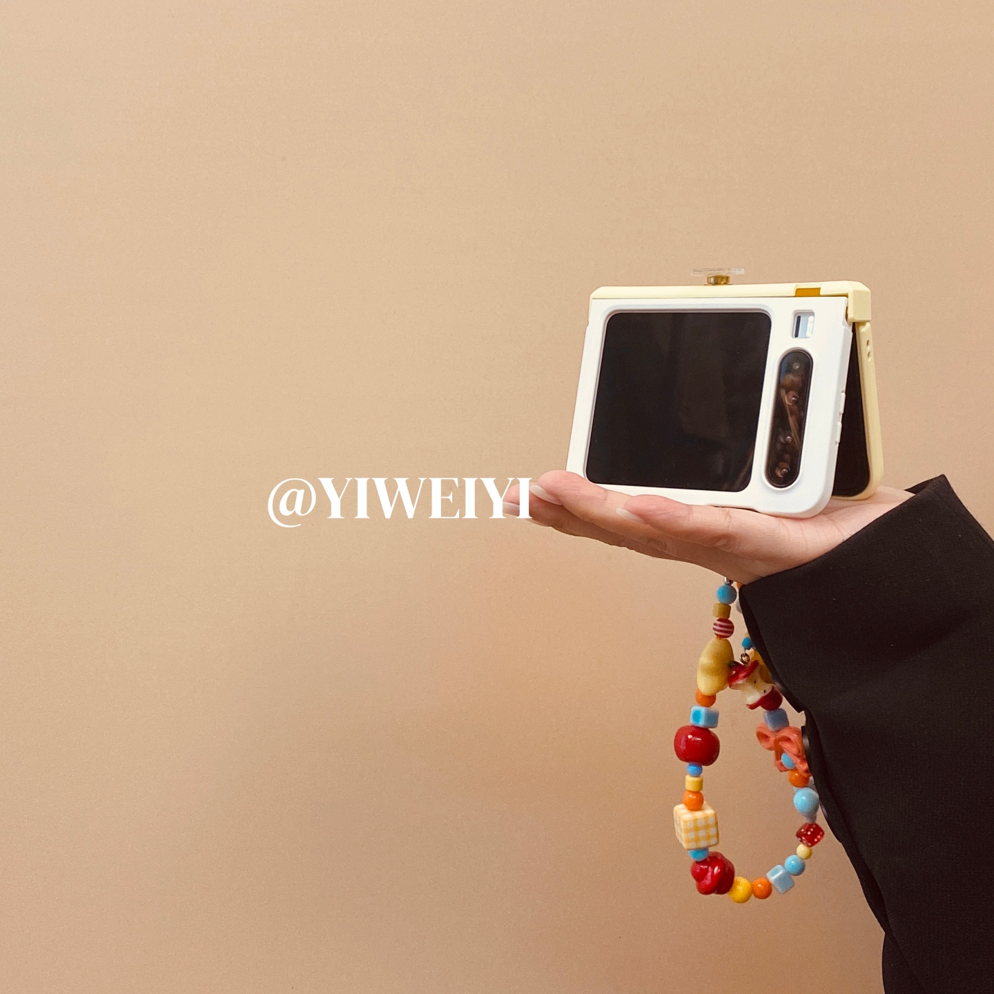 依维意 适用于华为PuraX手机壳Pocket2可爱原田治折叠屏OppoFindN3Flip旋转男孩VivoXFlip星星蝴蝶结方块手链