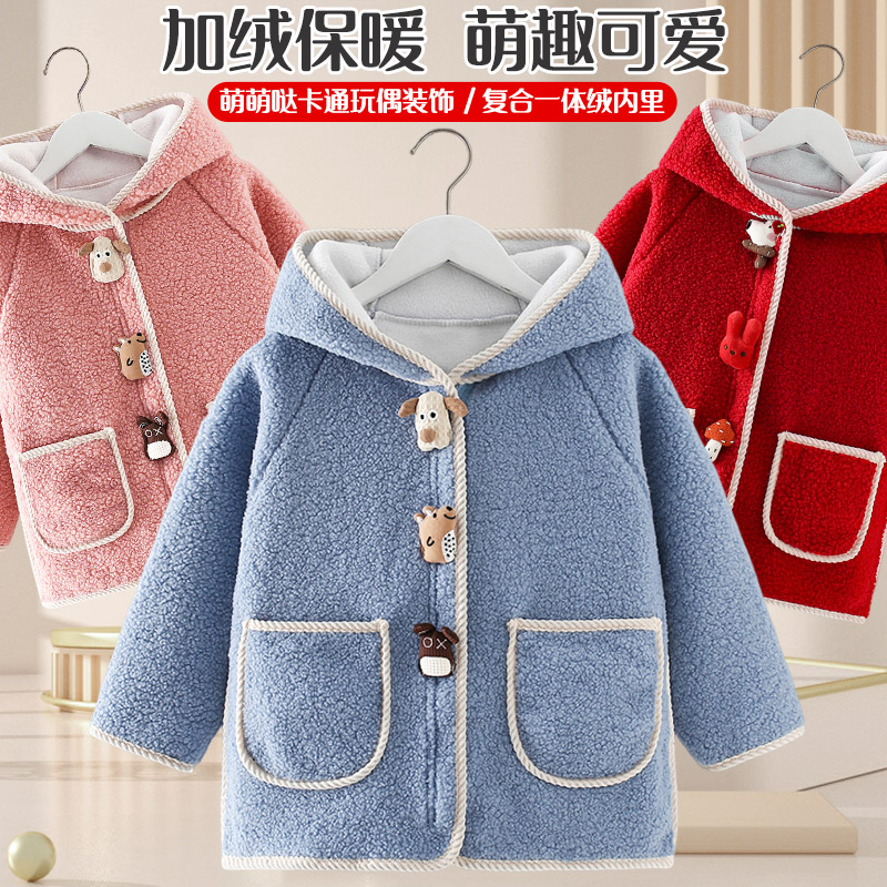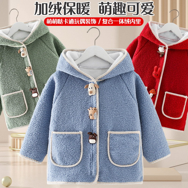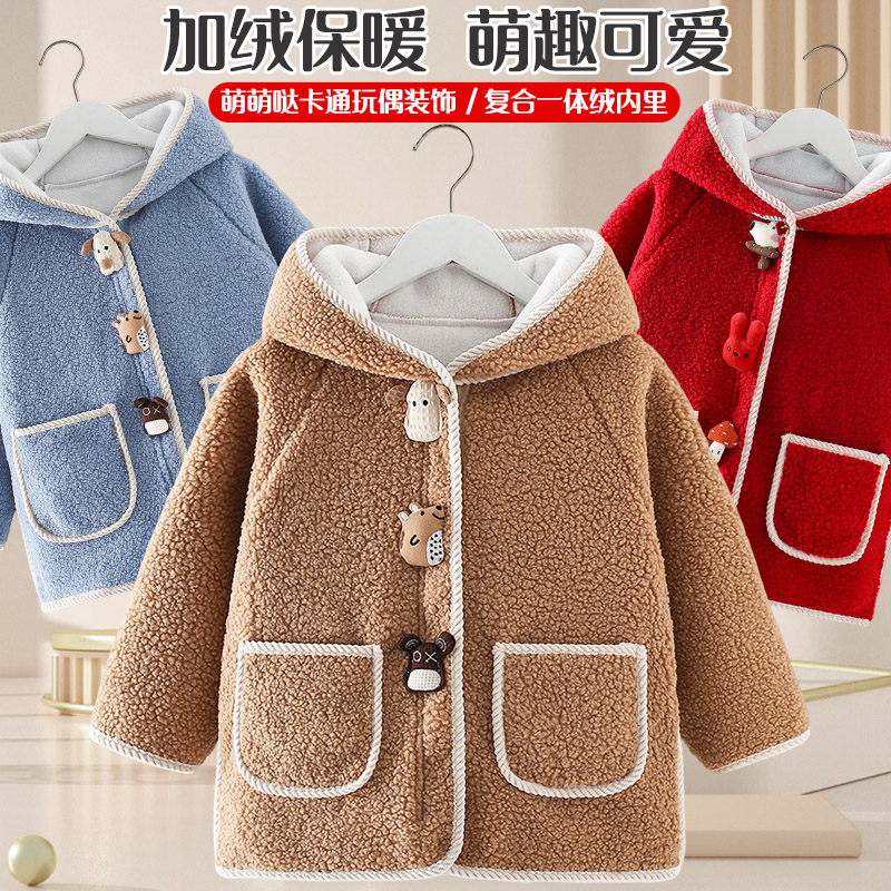 罩衣儿童外套中大童男女童保暖加绒加厚洋气外穿防脏护衣宝宝秋冬