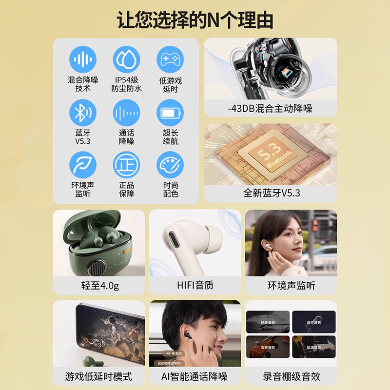 音贝奇Real1Pro无线蓝牙耳机主动降噪入耳式2025新款高音质长续航
