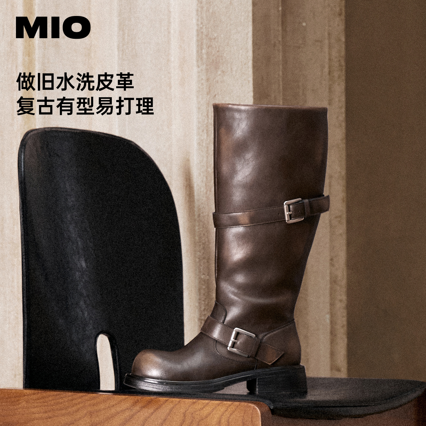 祝绪丹同款MIO米奥骑士靴2025冬季新款圆头增高机车搭扣长筒女靴
