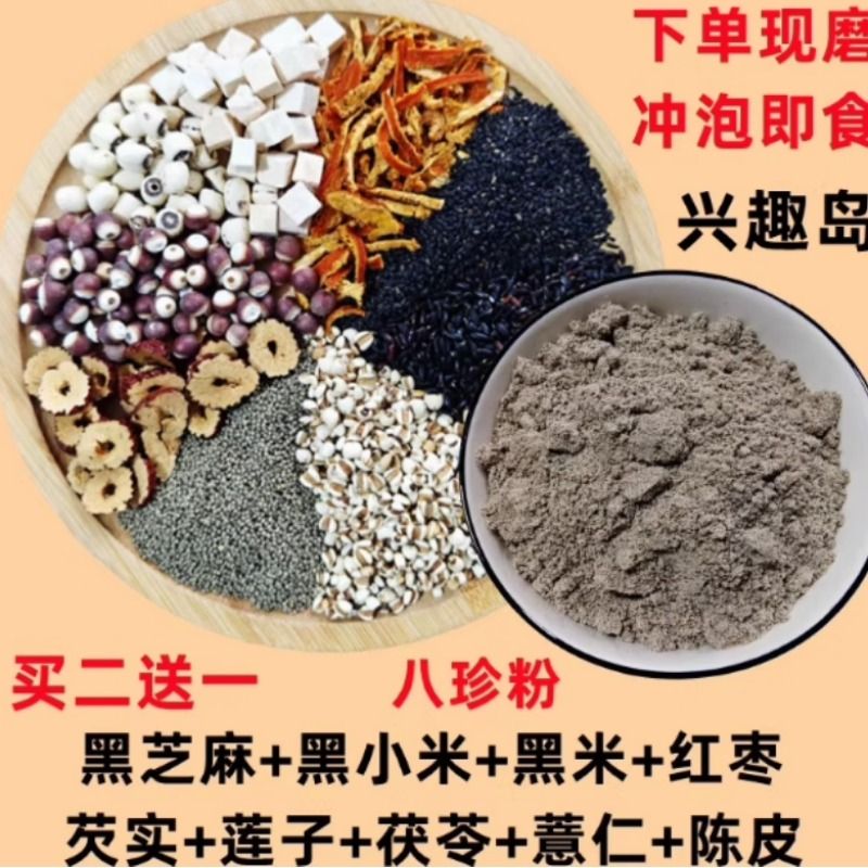 现磨熟八珍粉黑芝麻黑小米黑米红枣芡实莲子茯苓薏仁陈皮冲泡即食