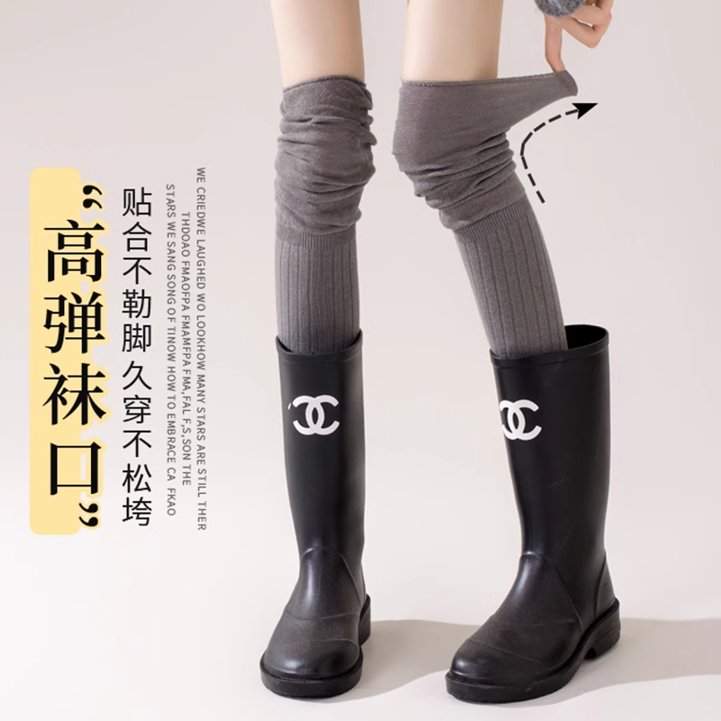 过膝袜子女高筒袜秋冬季加绒加厚保暖大腿纯色冬天半截长筒袜膝盖