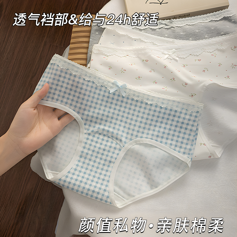 全棉时代内裤女士纯棉中腰女生内裤三角裤短裤新款不夹臀抗菌内裤