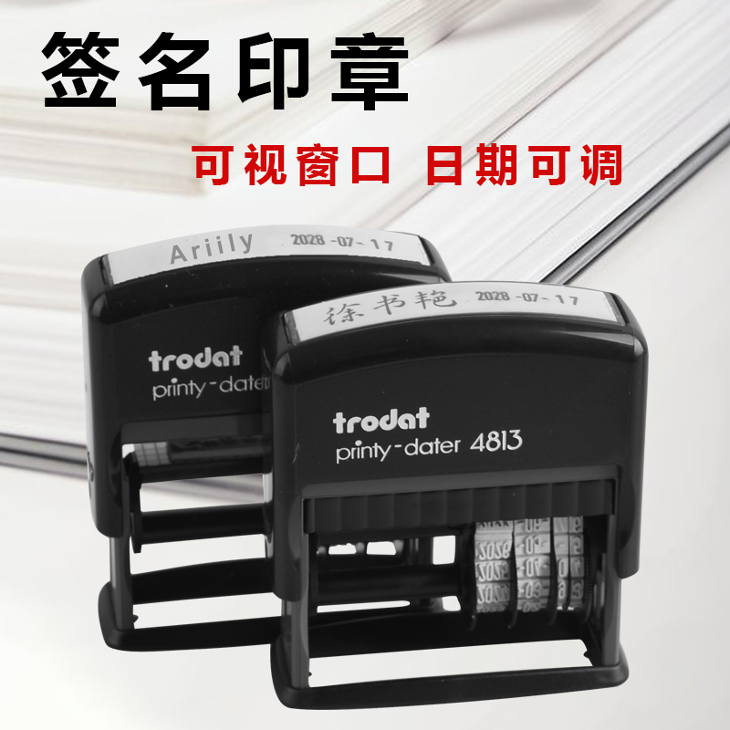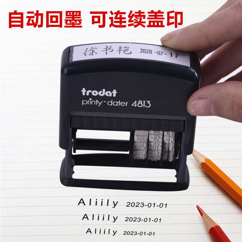 签名印章定刻字母名字可调日期翻转按压回墨自动出墨章中文英文历教师用修改作业