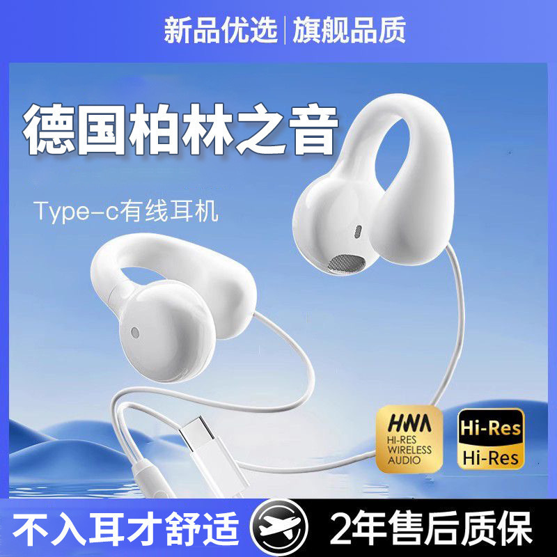 有线耳机夹耳式骨传导久戴不痛手机typec数字音频高音质隔音耳机