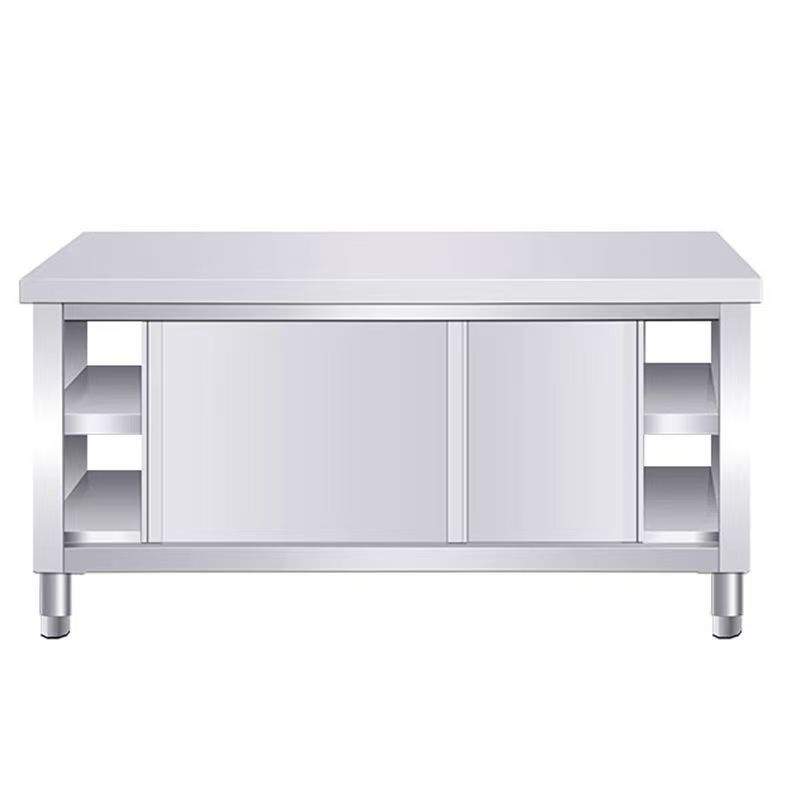 304不锈钢拉门工作台打荷台家用操作台饭店厨房切菜操作台储物柜