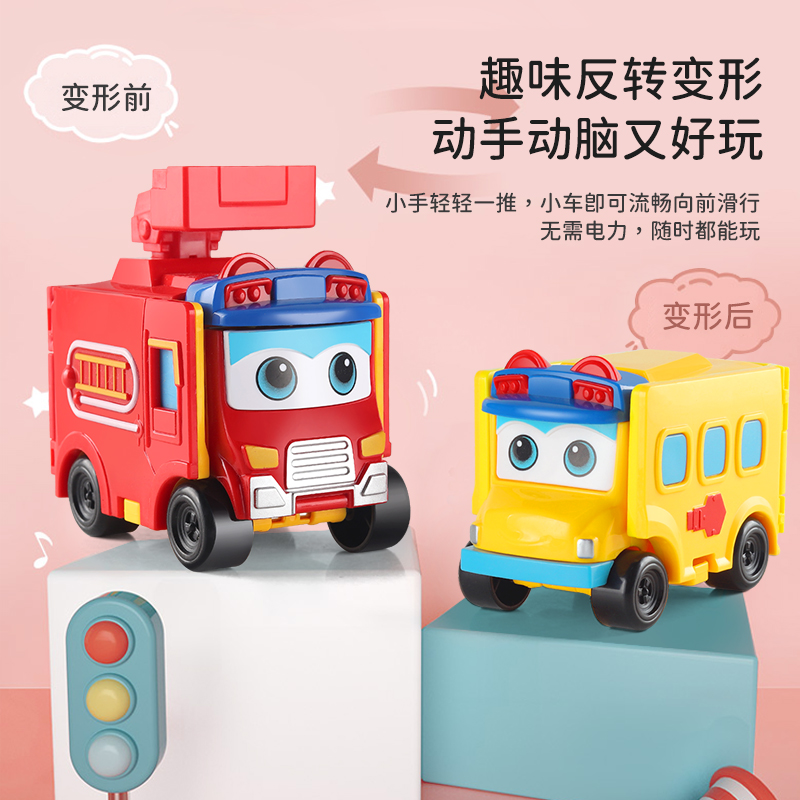 百变校巴车歌德反转玩具车变形儿童汽车益智玩具男孩套装警校车