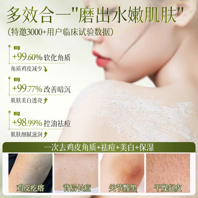 山茶磨砂膏身体全身美去鸡皮白去角质死皮疙瘩关节去黑鸡皮肤果酸