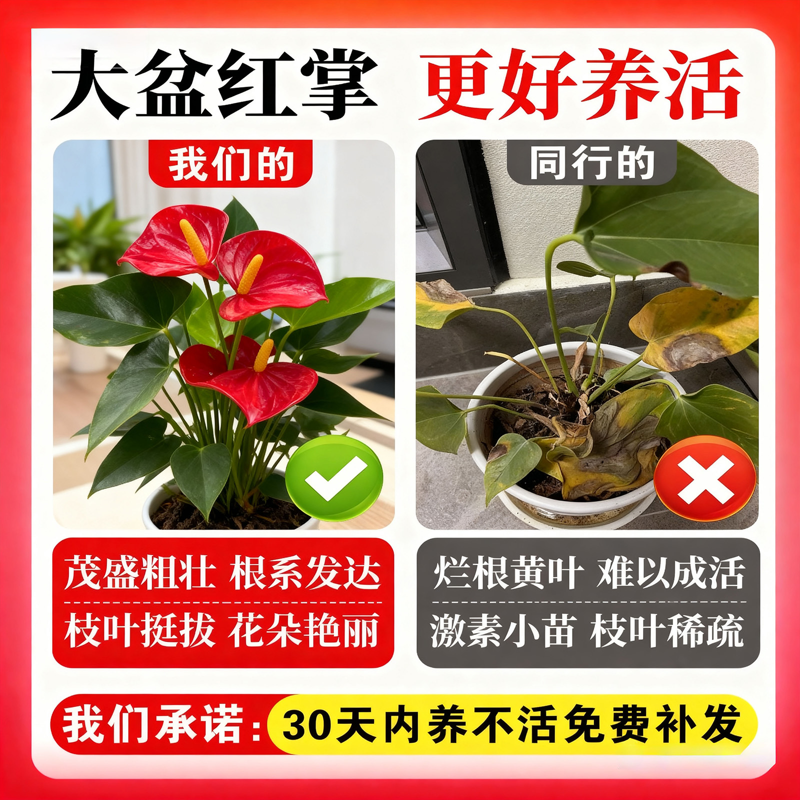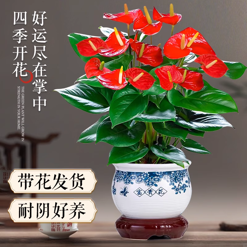 红掌盆栽鸿运当头办公室桌面水培绿植四季开花发财树吸甲醛好养
