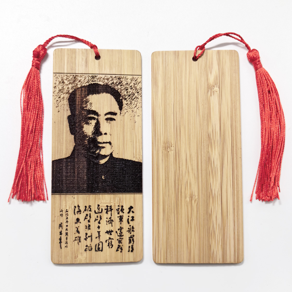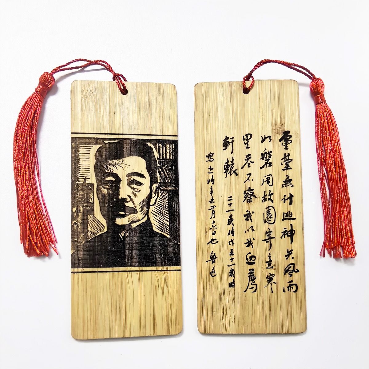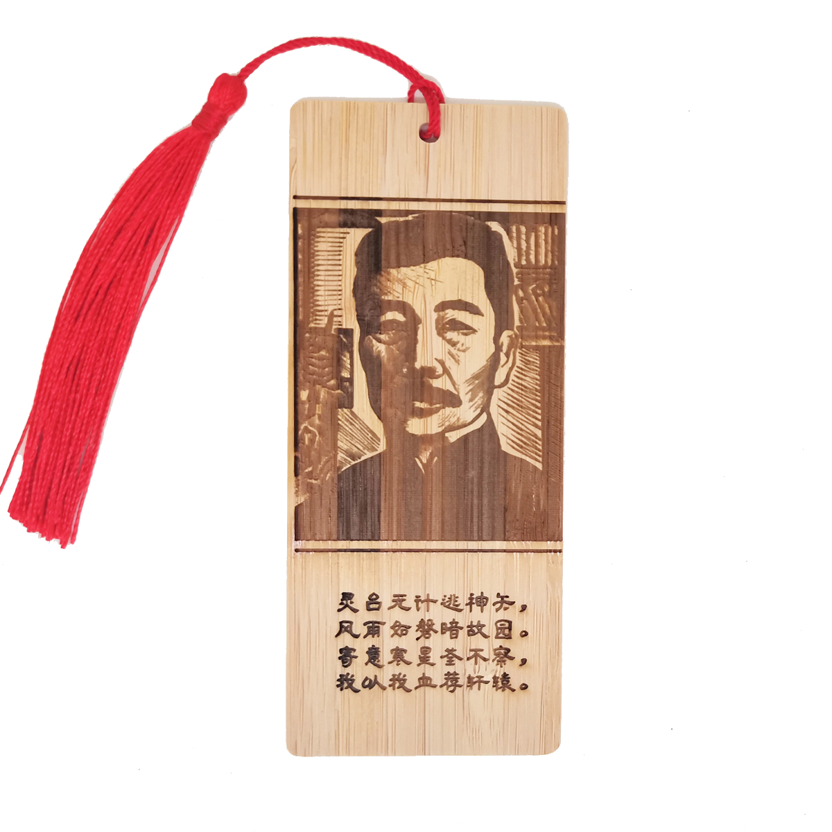 竹制书签 鲁迅版画及自照诗 激光浅雕牢固不褪色 带流苏
