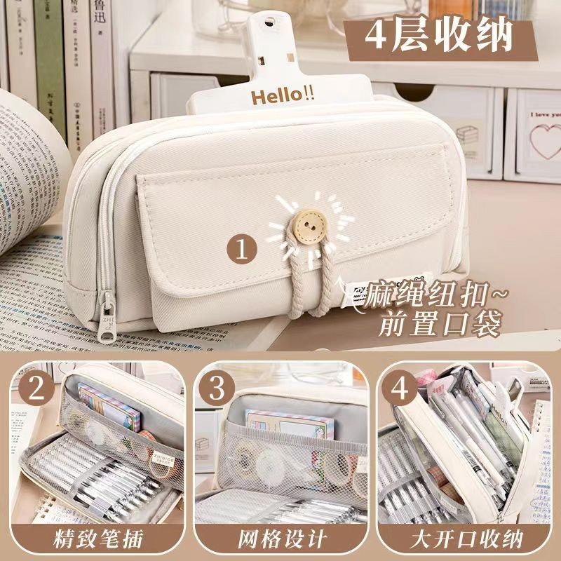日系笔袋ins超大容量女孩款儿童小学生文具盒初中女生帆布铅笔盒