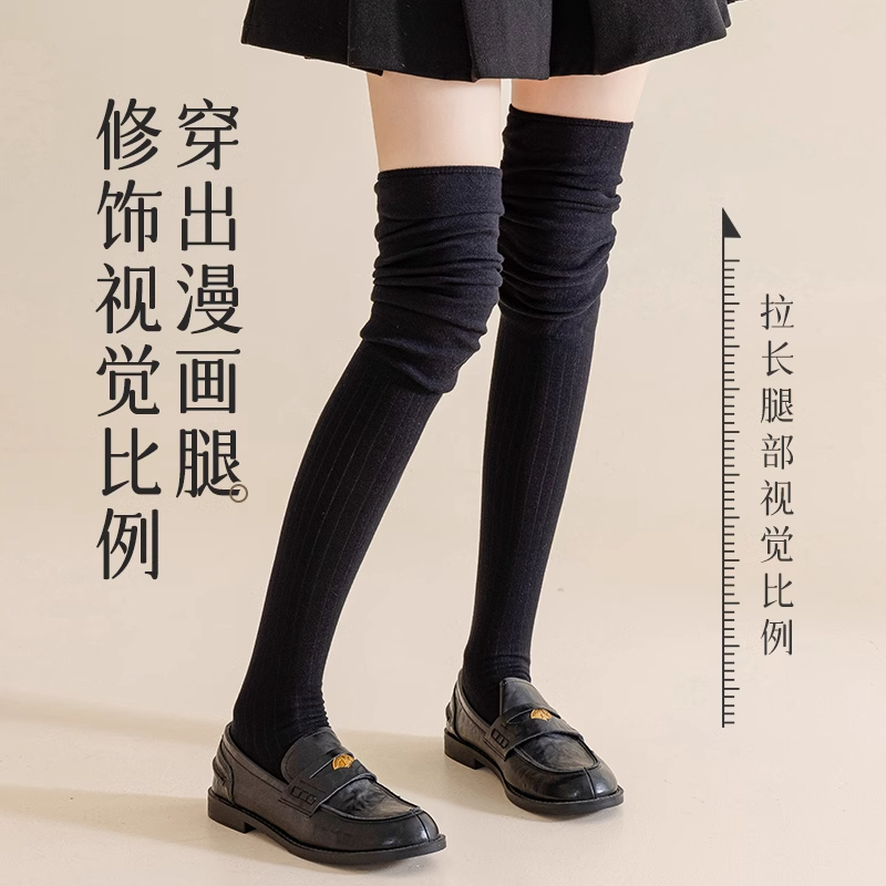 过膝袜子女高筒袜秋冬季加绒加厚保暖大腿纯色冬天半截长筒袜膝盖