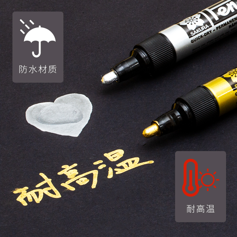 日本樱花油漆笔金色签到笔防水不掉色明星专用签名笔创意绘画高光笔大头细头记号笔彩色银色白色金属油性笔