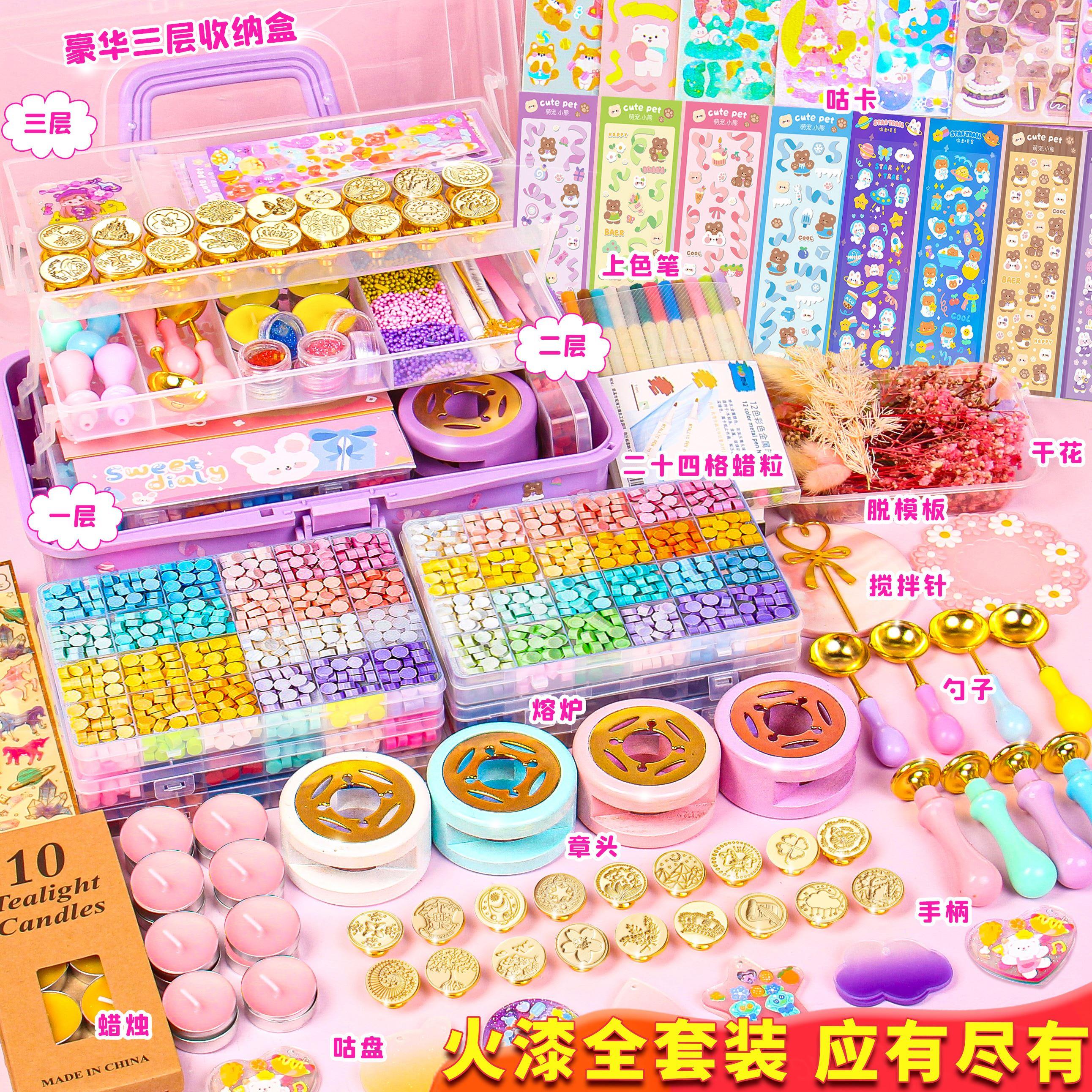 火漆印章套装豪华版咕卡全套蜡烛礼盒全套火气制作的夜光蜡粒火星印章火机火鸡蜡印火器女孩儿童玩具礼物