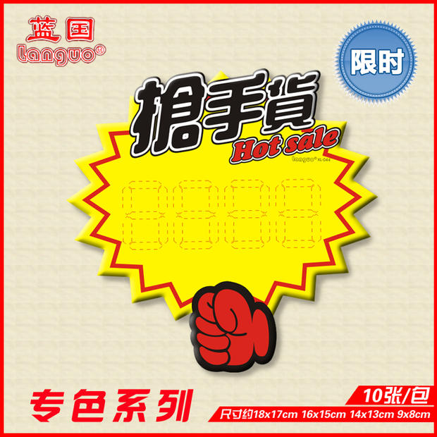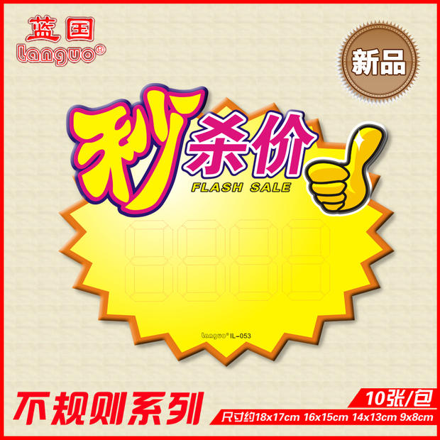 厂家供应商超标价展示用品 直销蓝国POP广告纸 小号爆炸贴XS003