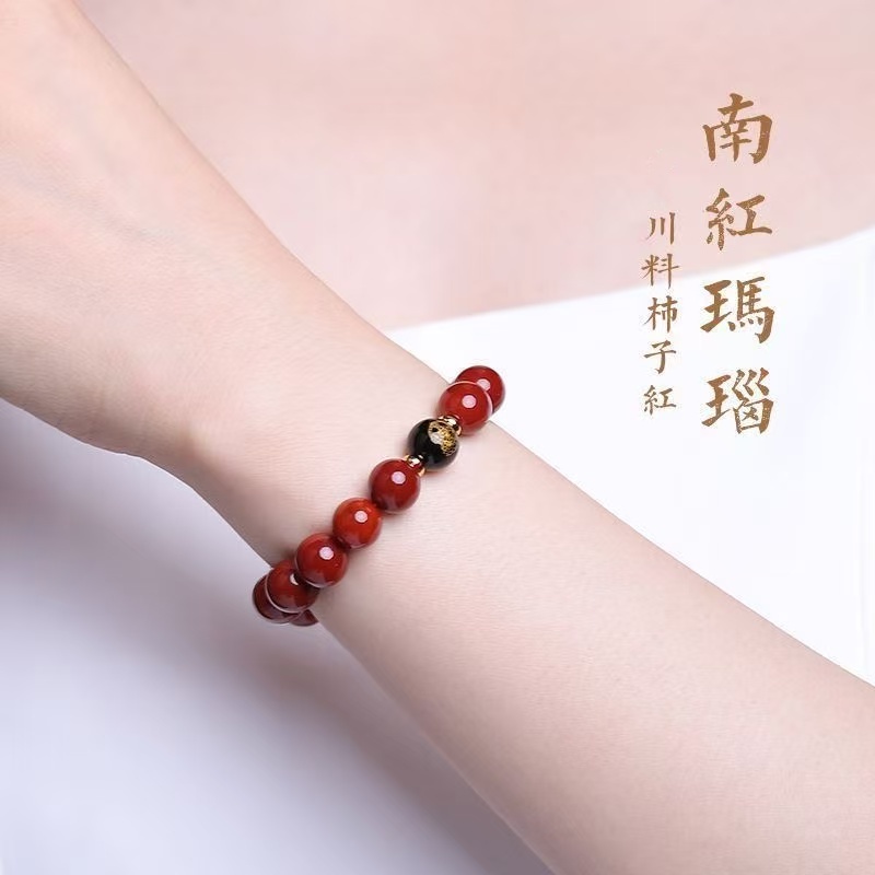 南红手串川料柿子红玛瑙本命佛手链转运水晶本命年送男女生日礼物