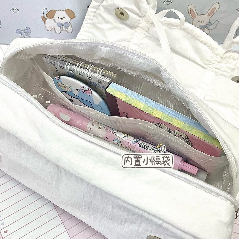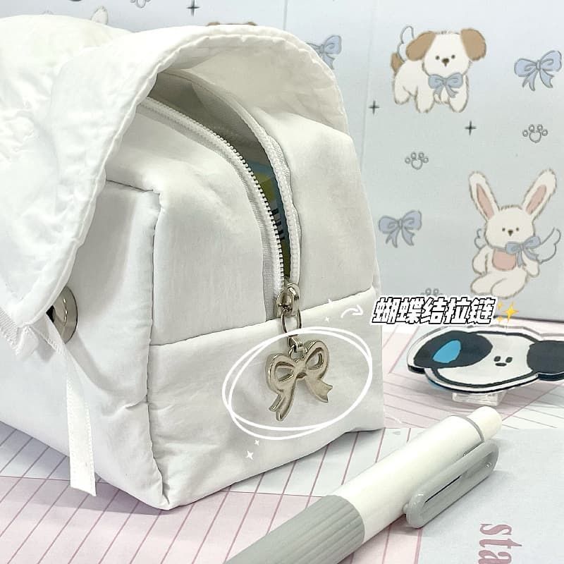 新款大容量抽拉蝴蝶结系带翻盖笔袋ins小众高颜值简约学生文具袋