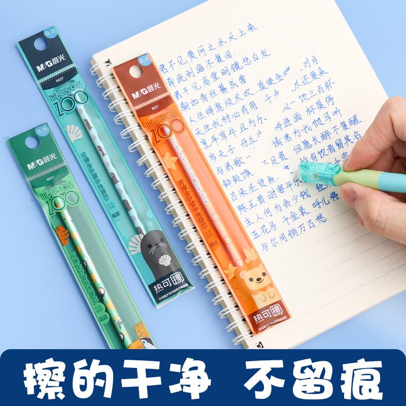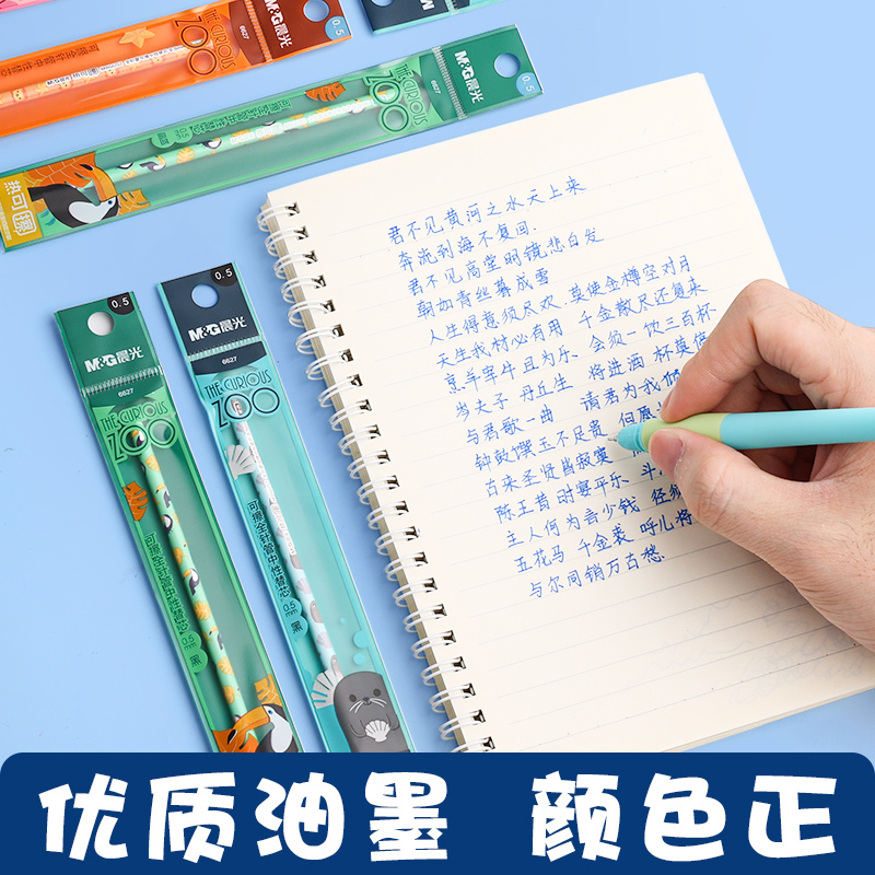晨光热可擦笔芯替换芯晶蓝色小学生专用黑色墨蓝色0.5全针管子弹头可擦中性笔笔摩磨易擦魔力檫笔芯官方正品