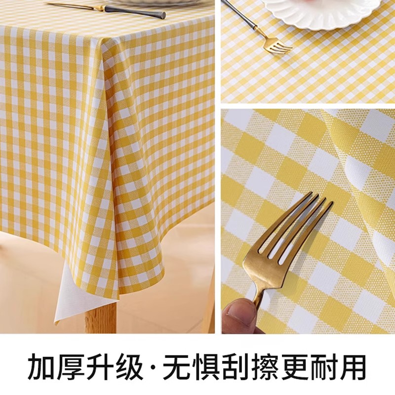小清新格子桌布防水防油免洗ins风长方形餐桌布茶几桌垫布PVC简约