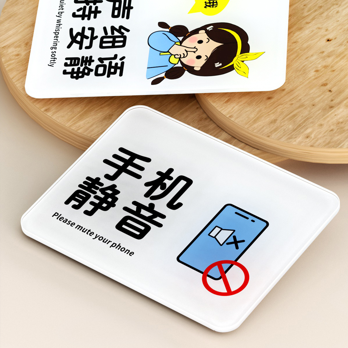 亚克力保持安静控制音量提示牌轻声说话标识手机静音请勿大声喧哗卡通贴牌定制