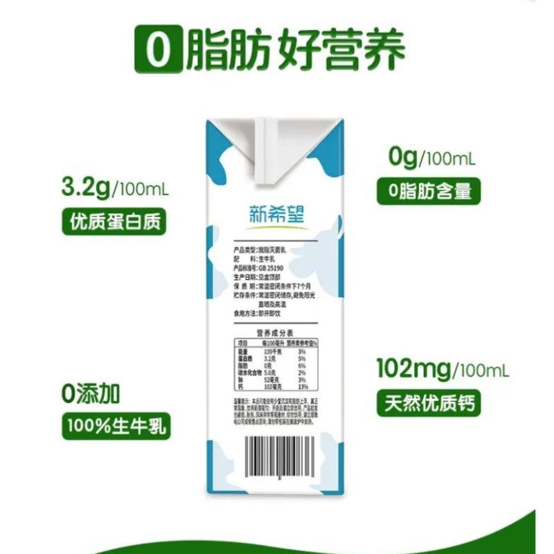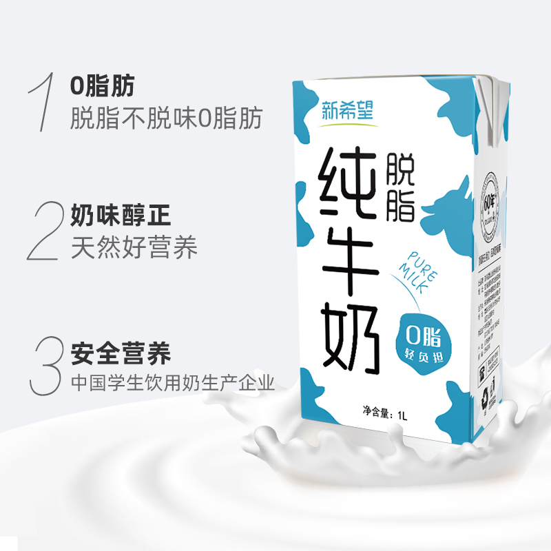 7月产新希望纯牛奶脱脂牛奶烘焙咖啡办公酒店商用1L*12盒