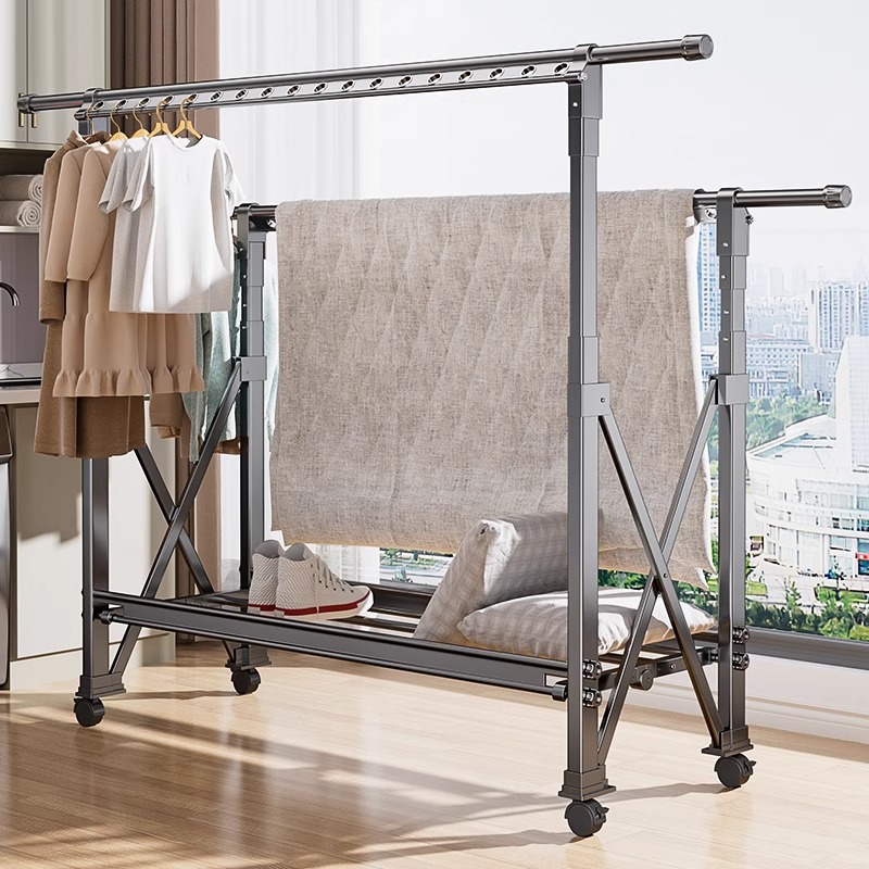 折叠晾衣架落地室内家用阳台卧室不锈钢室外凉伸缩杆式晒被子神器
