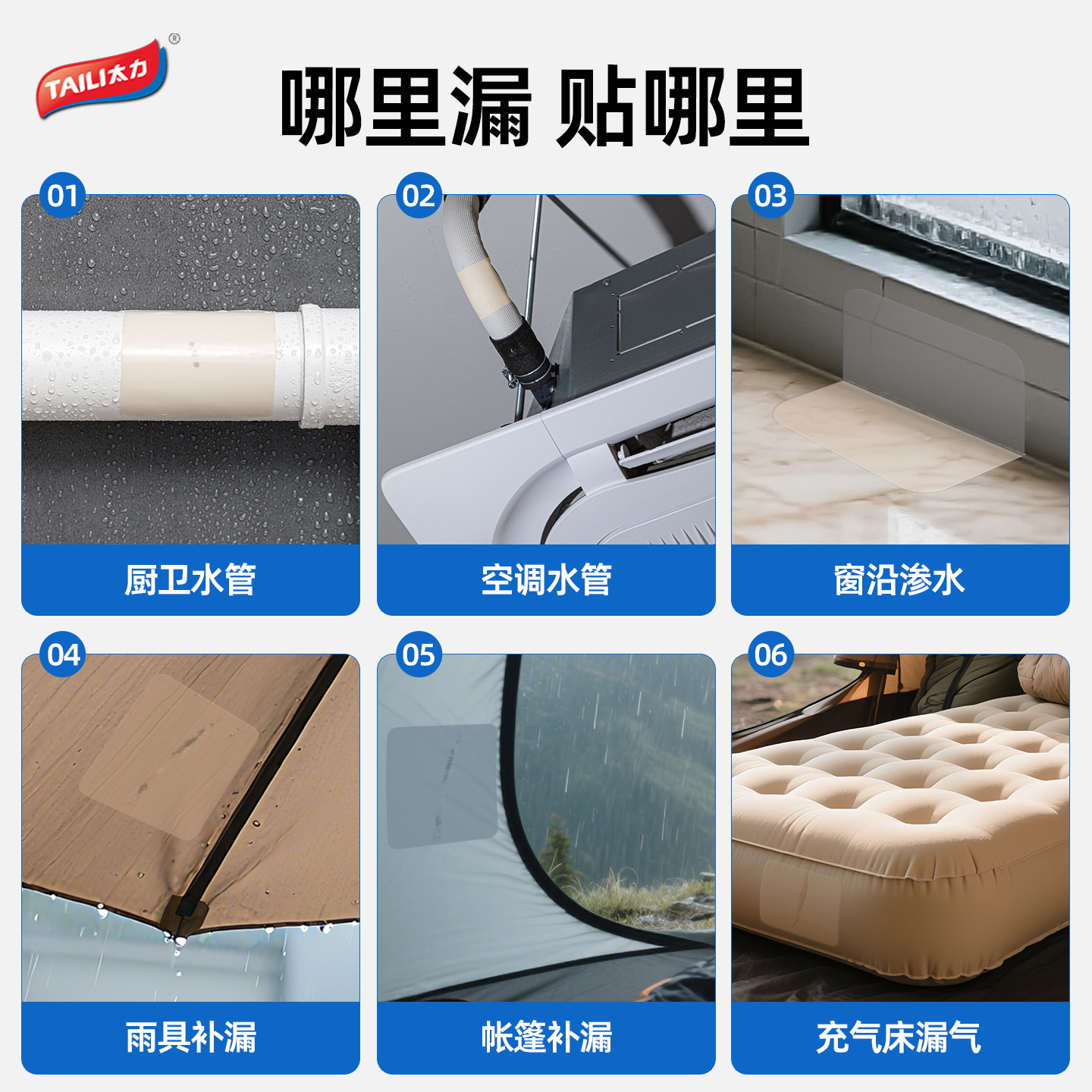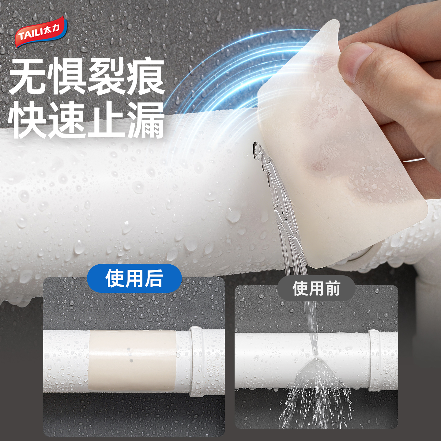 太力防水胶带补漏自粘胶布下水管卫生间水龙头厨房pvc漏水修补贴洗衣机空调排水塑料管高粘度强力止水神器