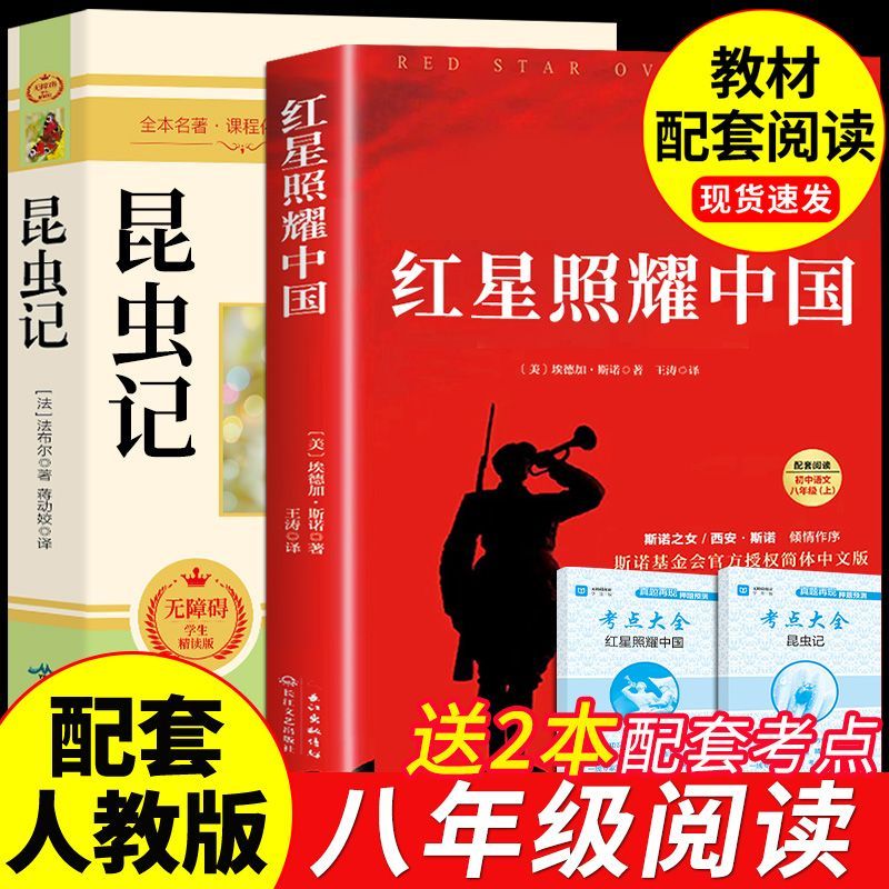 红星照耀中国和昆虫记正版原著八年级上册必读的课外书8上初二阅读名著配套人教版书籍经典常谈下册书青年出版社教育颜人民完整版