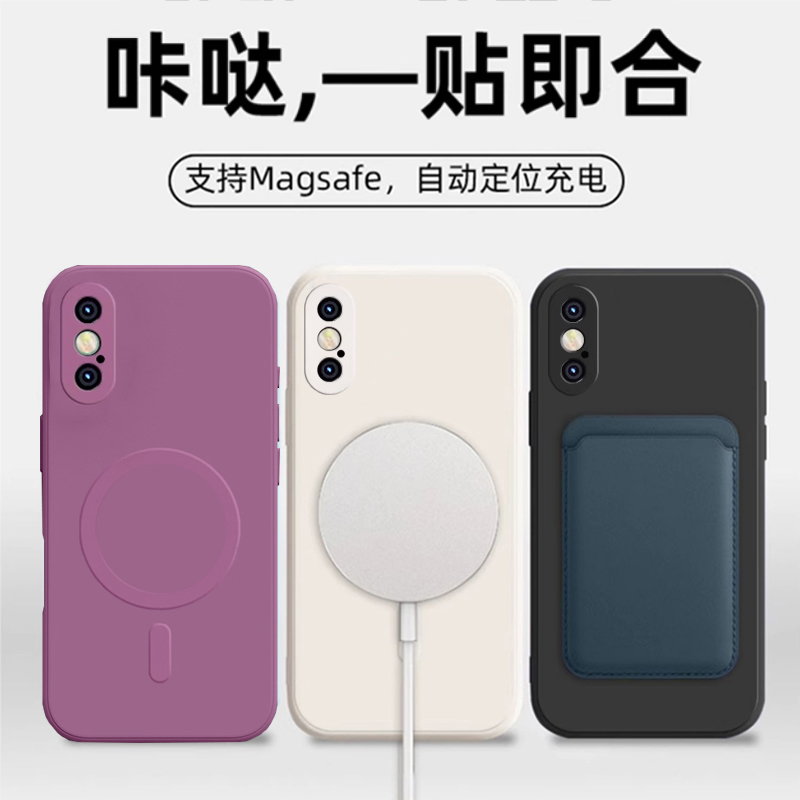 适用于苹果x手机壳iPhonexsmax新款磁吸充电保护套xr液态硅胶外壳iPhonexs樱花紫女款Magsafe无线充防摔软男