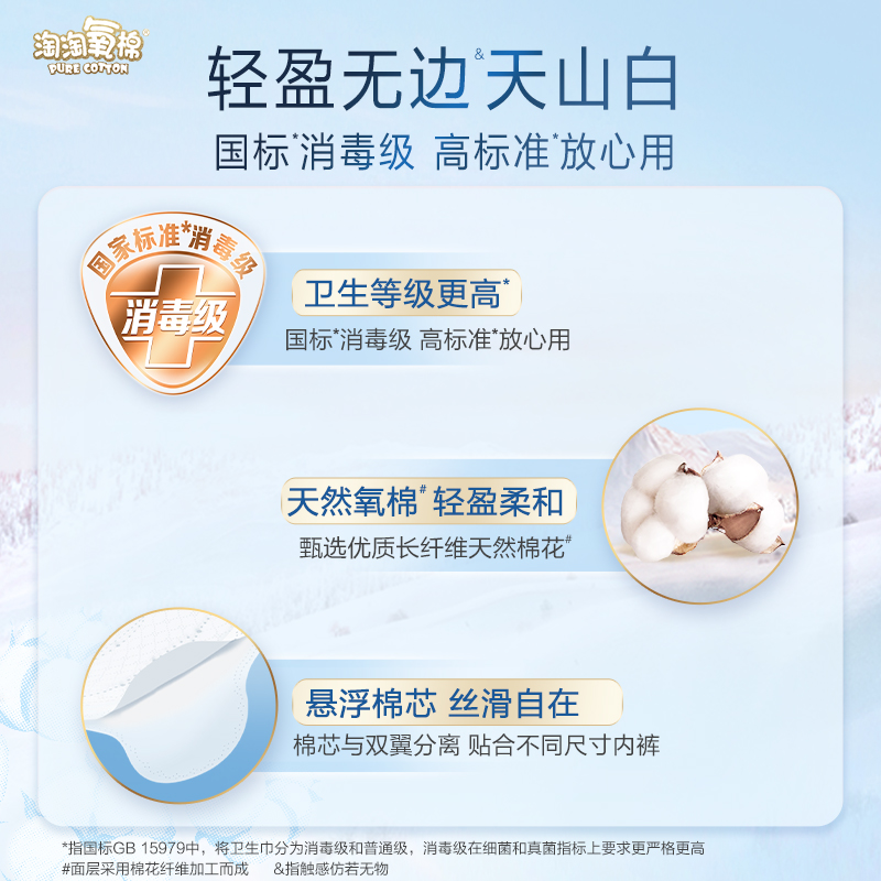 淘淘氧棉消毒级卫生巾天山白超薄纯棉日夜组合学生姨妈巾官方正品