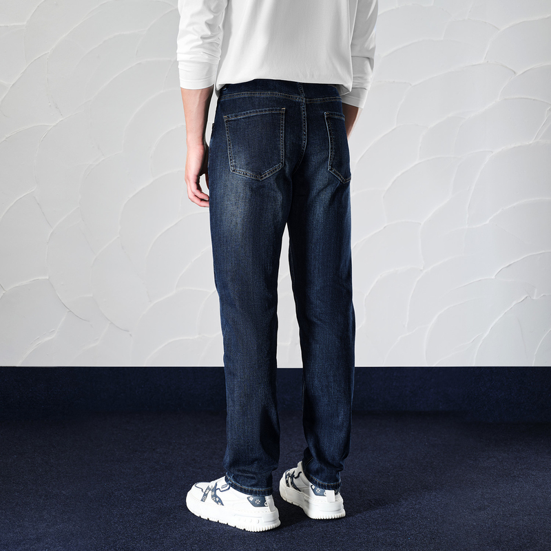 HLA/海澜之家山不在高系列牛仔裤冬季款印绣结合时尚保暖裤子男