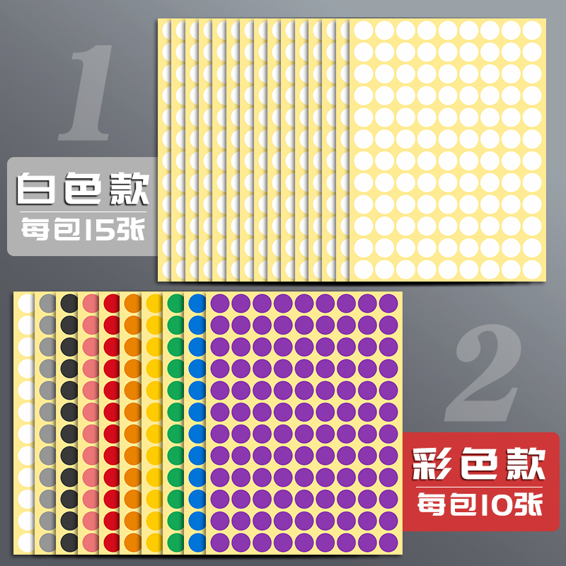 3包圆点贴圆贴纸圆形不干胶标签纸手写可粘贴小尺寸小圆点小标签贴纸便签口取纸数字号码编码编号白色红大号