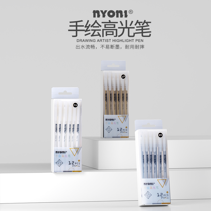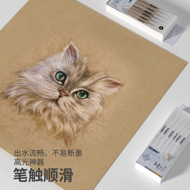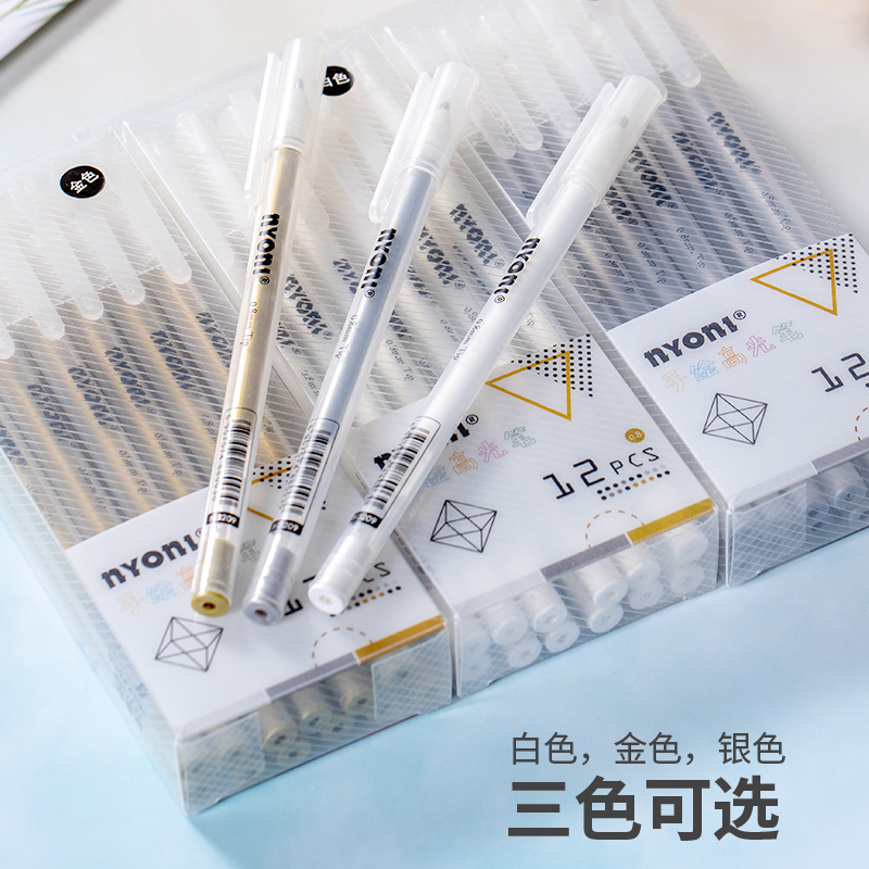 尼奥尼高光笔 学生手绘高光白笔美术用品金色银色白色笔芯黑底写白字细头水彩留白勾线笔高光绘画笔