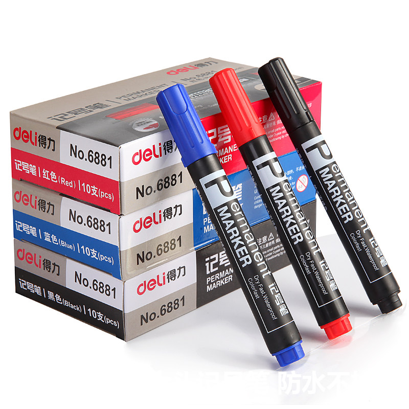 得力记号笔黑色油性不易掉色双头记号笔彩色粗划重点大头笔细头荧光白色粗头防水不易掉色马克笔