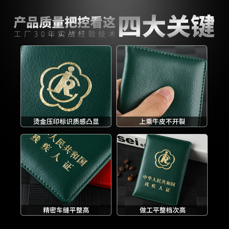 真皮二代残疾人证保护套外皮绿色大红色残疾人证书证件套外壳透明磨砂套