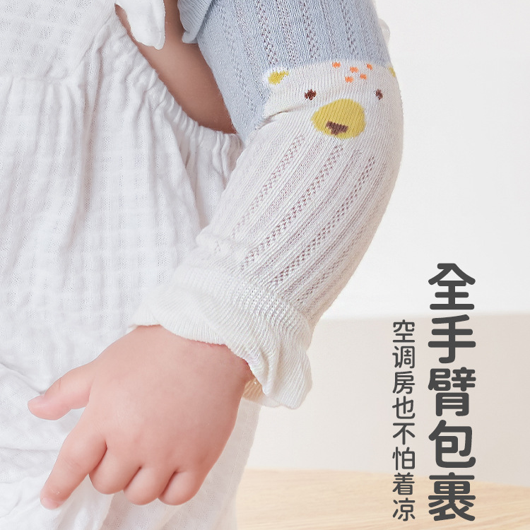 婧麒婴儿袖套夏季薄款婴儿卡通松口透气护肘儿童防蚊长筒网眼护袖