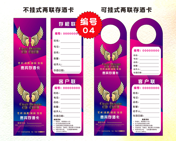 挂瓶式双联打孔酒吧存酒卡餐厅小酒吧存酒单寄存单定制作印刷设计