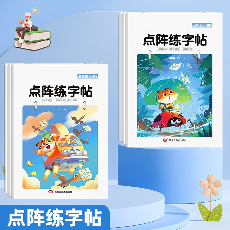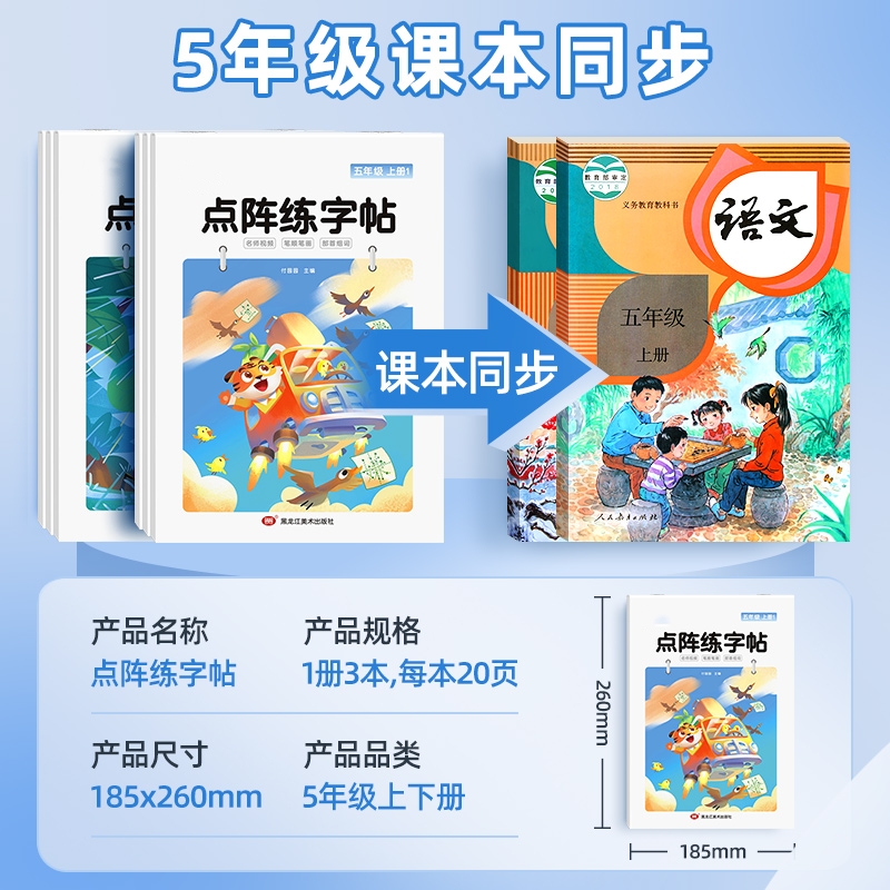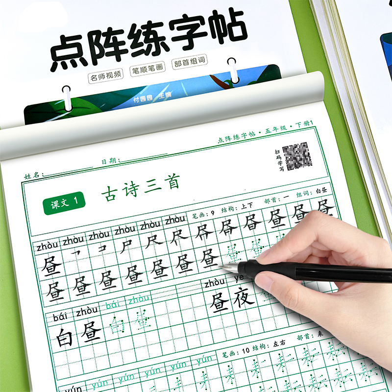 小学生五年级同步生字点阵练字帖带笔顺拼音笔画分解组词控笔训练描红本部编版5上下册语文写字表汉字练习本儿童钢笔字帖古诗偏旁